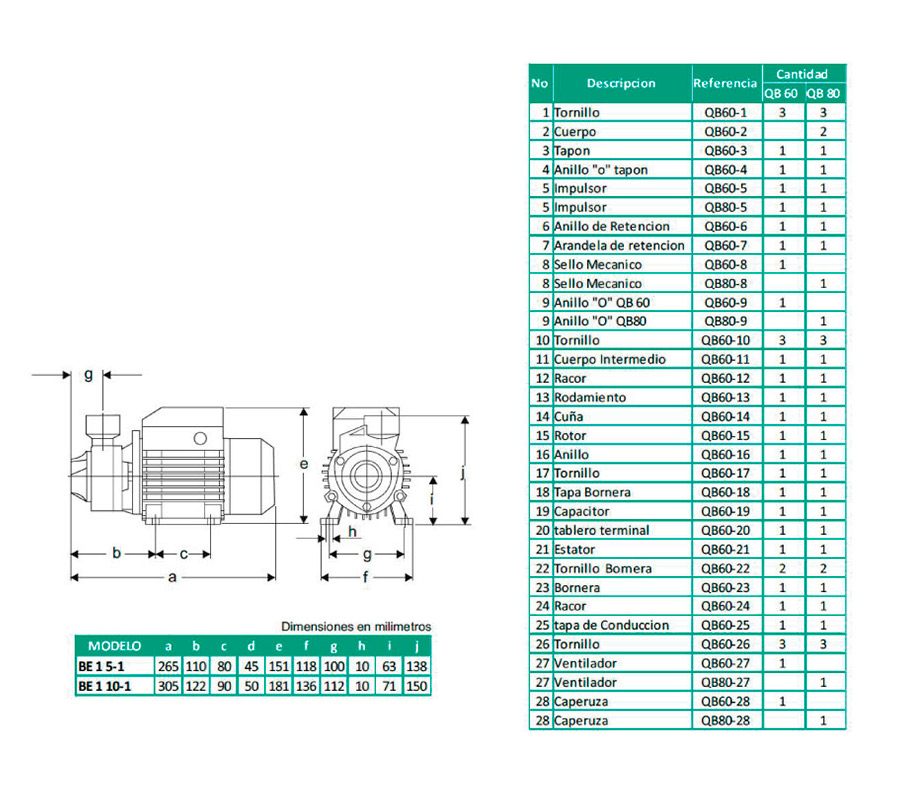 MODELO | Ø SUCCIÓN | Ø DESCARGA | POTENCIA