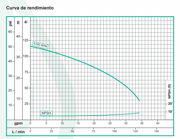 - ** El caudal (Q) máximo se logra con la válvula de paso totalmente abierta (gpm=galones por minuto)