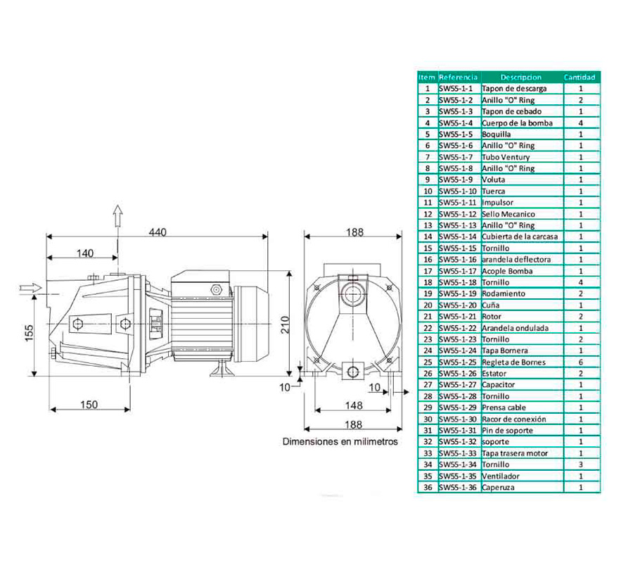 - Sello mecánico: Carbón / Cerámica / Buna-N