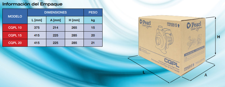 Electrobomba centrifuga alto caudal | PEARL | Ref CQPL 20F16S | 2.0 | 110/220 | 1 | 20/10 | 2″ x 2″