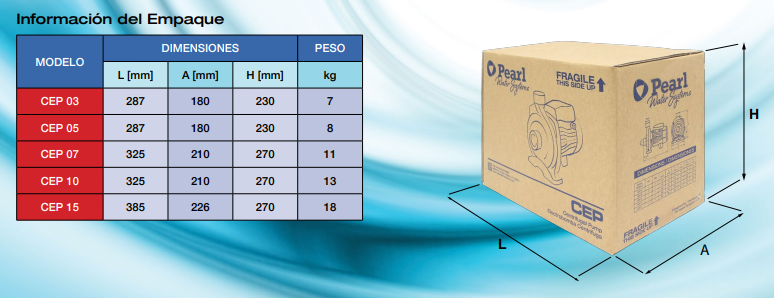 Electrobomba centrifuga | PEARL | Ref CEP 05A16S | 0,5 | 110 | 1 | 6,5 | 1″ x 1″