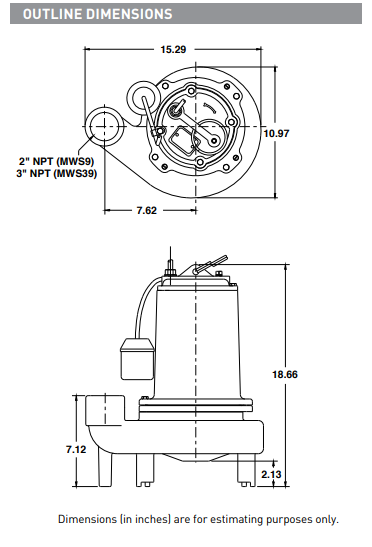Electrobomba de drenaje de aguas negras | En hierro | PENTAIR | Ref MWS39200220T | 2,0 | 230/3 | 1.750 RPM | 10 | 3″