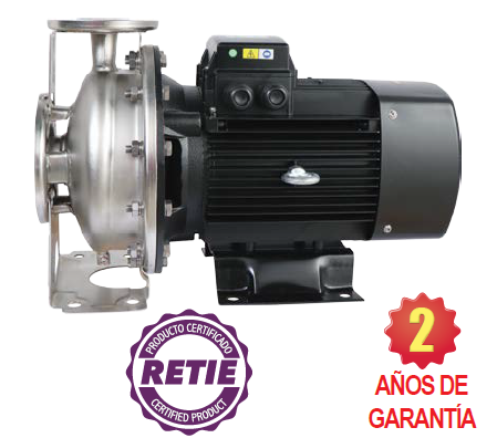 - Cuerpo hidráulico, succión y descarga en acero inoxidable 304
