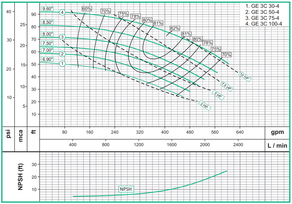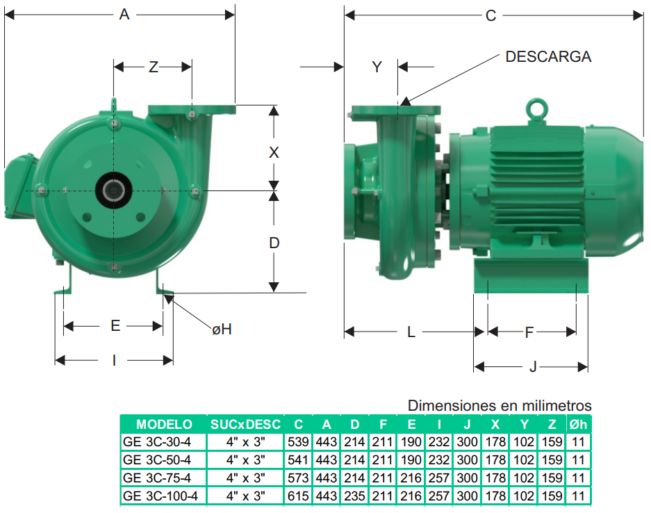 Succión: 4″ NPT Brida 125
