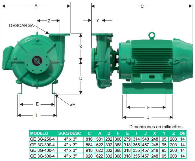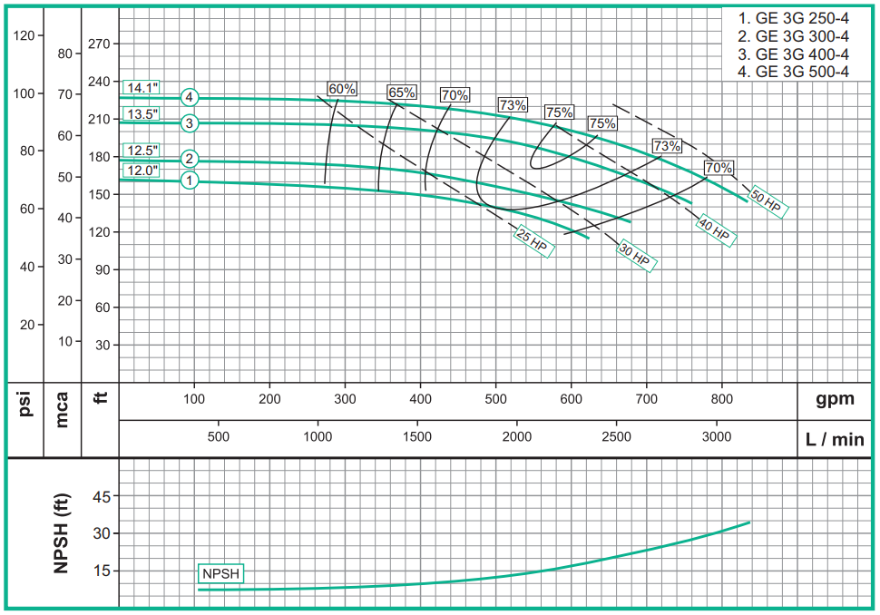 Succión: 4″ NPT Brida 125