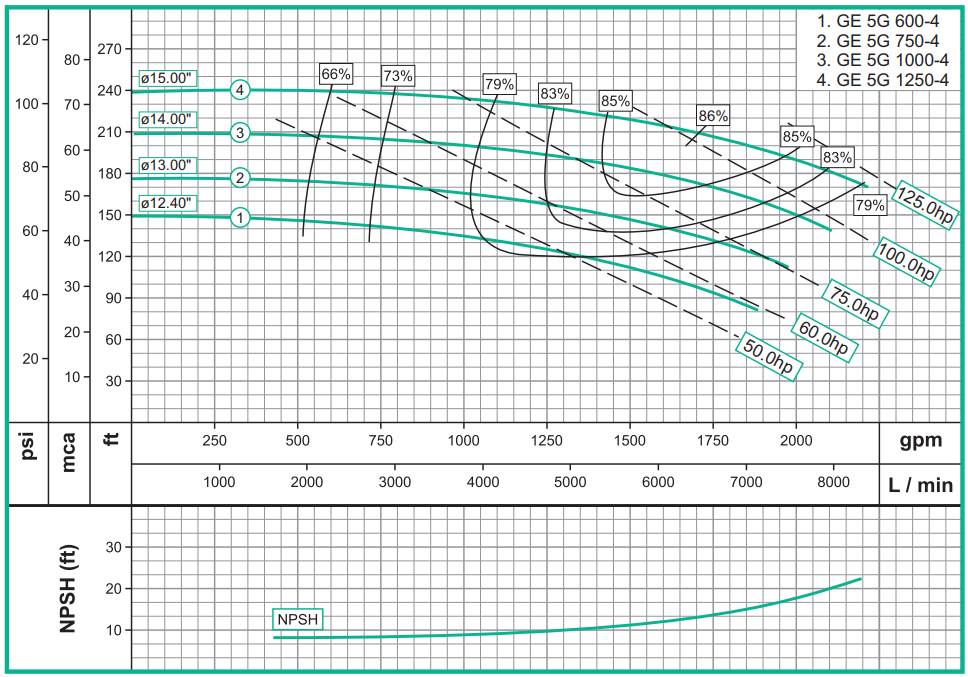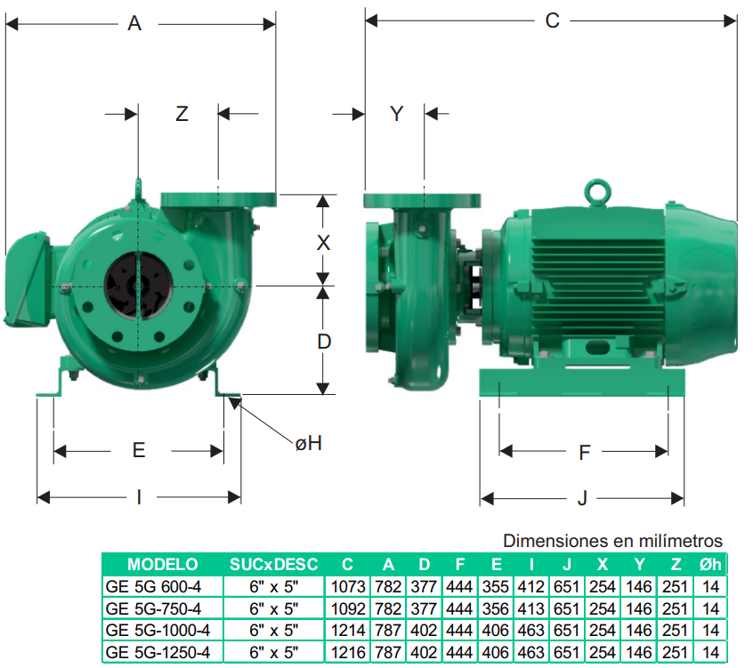 GE 5G 1000-4 | 1B0166 | Bomba centrífuga GS | BARNES | Hierro | Trifásica | Motor eléctrico 1.800rpm