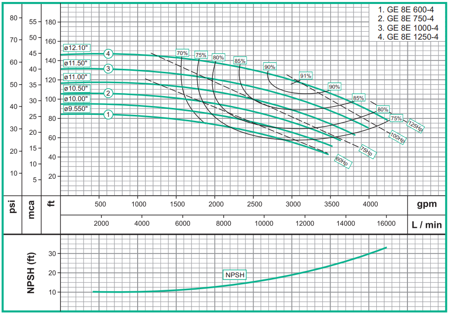 GE 8E 600-4 | 1B0094 | Bomba centrífuga GS | BARNES | Hierro | Trifásica | Motor eléctrico 1.800rpm