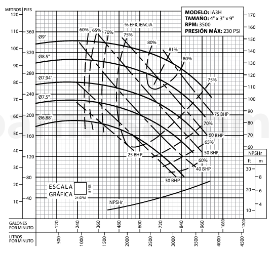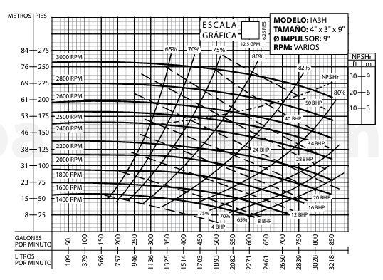 * Prueba realizada con agua, gravedad específica 1.0 @ 20 °C (68 °F); otros líquidos pueden variar el rendimiento