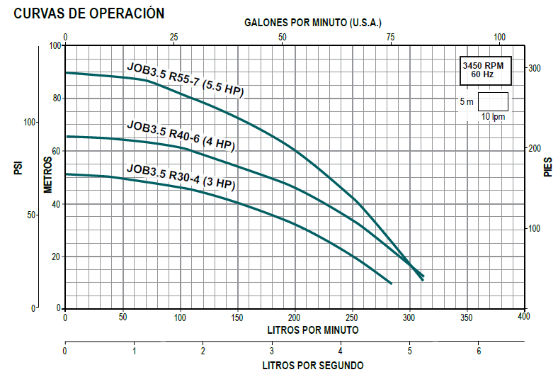 - Rango de flujo 32 – 5.07 lps / 139 – 304 lpm