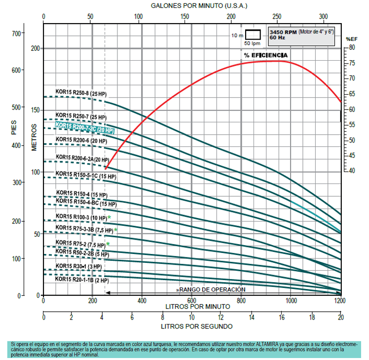 - Rango de flujo: 4.1 – 20 lps / 250 – 1,200 lpm