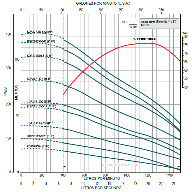 • Rango de flujo: 6.6 – 25 lps / 400 – 1,500 lpm