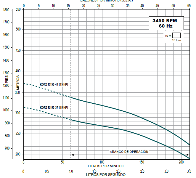 • Rango de flujo: 1 – 3.5 lps / 60 – 210 lpm