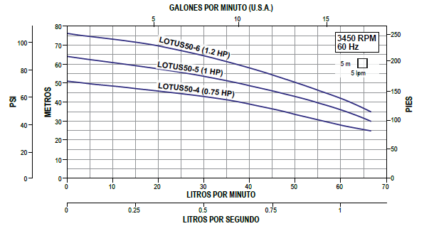 - Rango de flujo 43 – 1.02 lps / 26 – 61 lpm