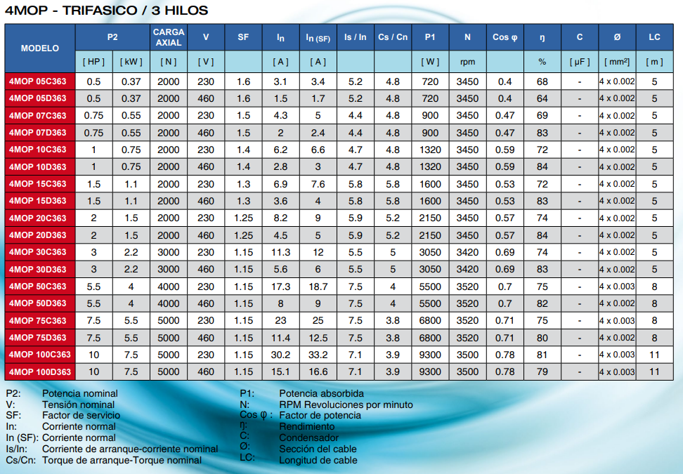 Motor sumergible | Tipo lapicero | PEARL | En acero inoxidable | 3 hilos | Diámetro de pozo de 4″ | Ref 4MOP 75D363